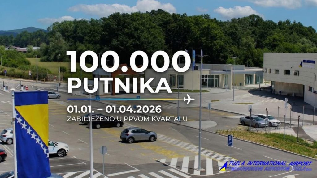 Međunarodni aerodrom Tuzla ostvario je izuzetno uspješan početak 2026. godine, sa ukupno 100.000 opsluženih putnika u prvom kvartalu. Ovaj rezultat predstavlja značajan iskorak i potvrđuje trend oporavka i rasta zračnog saobraćaja na ovom aerodromu.