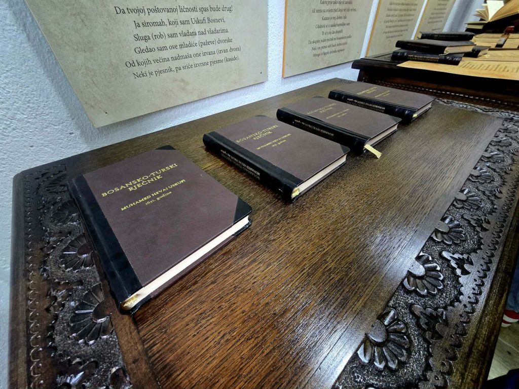 Tu su još i sadržaji Povelje bana Stjepana II Kotromanića, Kunovski zapis, Humačka ploča, Pismo Gazi-Husrev bega, zatim naslovne stranice knjiga Matije Divkovića, Nauk krstjanski i prevod djela Ispovjedaonik, fra Stjepana Matijevića sa latinskog na bosanski jezik, tekst fra Antuna Kneževića objavljen u časopisu „Bosanski prijatelj“ 1870. godine, kao i službene evidencije iz austrougarskog perioda (1878-1918), te reprint izdanje „Gramatika bosanskog jezika“ iz 1890. godine.