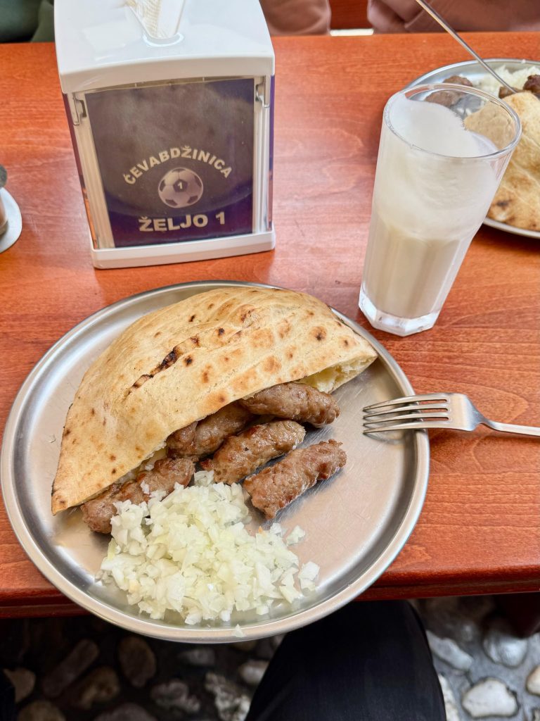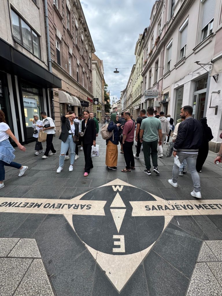 “Uske ulice, osmanska arhitektura, kafići s jakom kafom, a zrakom se širi miris ćevapa. Odmah se osjeti spoj Istoka i Evrope. Dan smo završili obilnim večernjim obrokom i hladnim pivom, idealno nakon putovanja. Naredni dan smo započeli ćevapima u Ćevabdžinici „Željo“. Ćevapi su sočni, svježe pečeni, sa lukom i somunom. Potom smo obišli mjesto atentata na nadvojvodu Franca Ferdinanda kod Latinske ćuprije. Zatim, Inat kuću koja je kamen po kamen premještena na drugu stranu rijeke jer se vlasnik nije htio odreći zemljišta za gradnju vijećnice”- prepričao je Denis na svom blogu, ono što je naučio o glavnom gradu BiH.