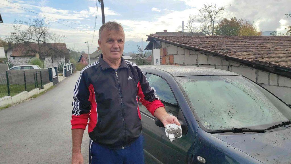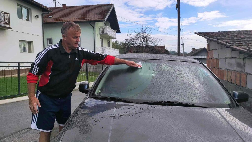 Njen prvi komšija, Idriz Nurkić, pokušava ostrugati crni sloj prašine sa svog automobila. Kako kaže, škripi sve pod rukama.