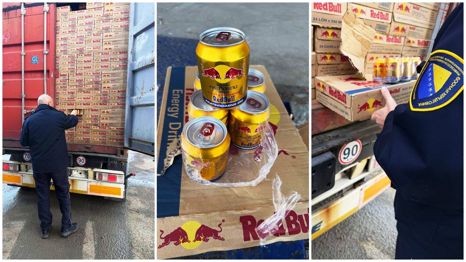 Službenici Uprave za indirektno oporezivanje u Carinskoj ispostavi Gradiška spriječili su pokušaj uvoza 69.600 limenki krivotvorenog energetskog pića Red Bull, čija se tržišna vrijednost u Bosni i Hercegovini procjenjue na iznos od 174.000 KM.