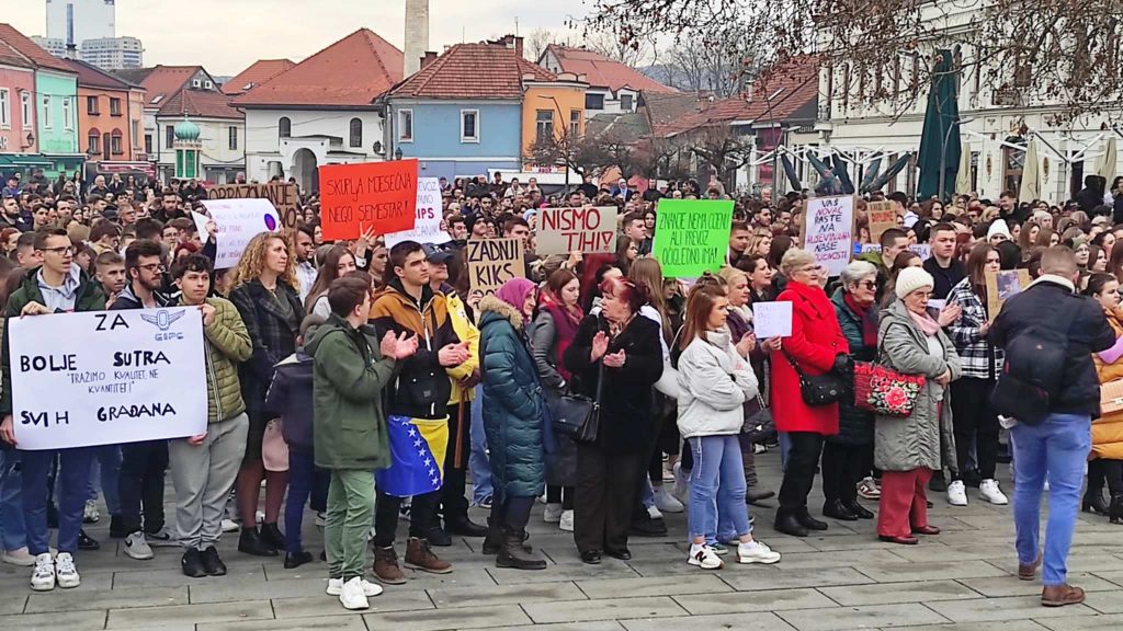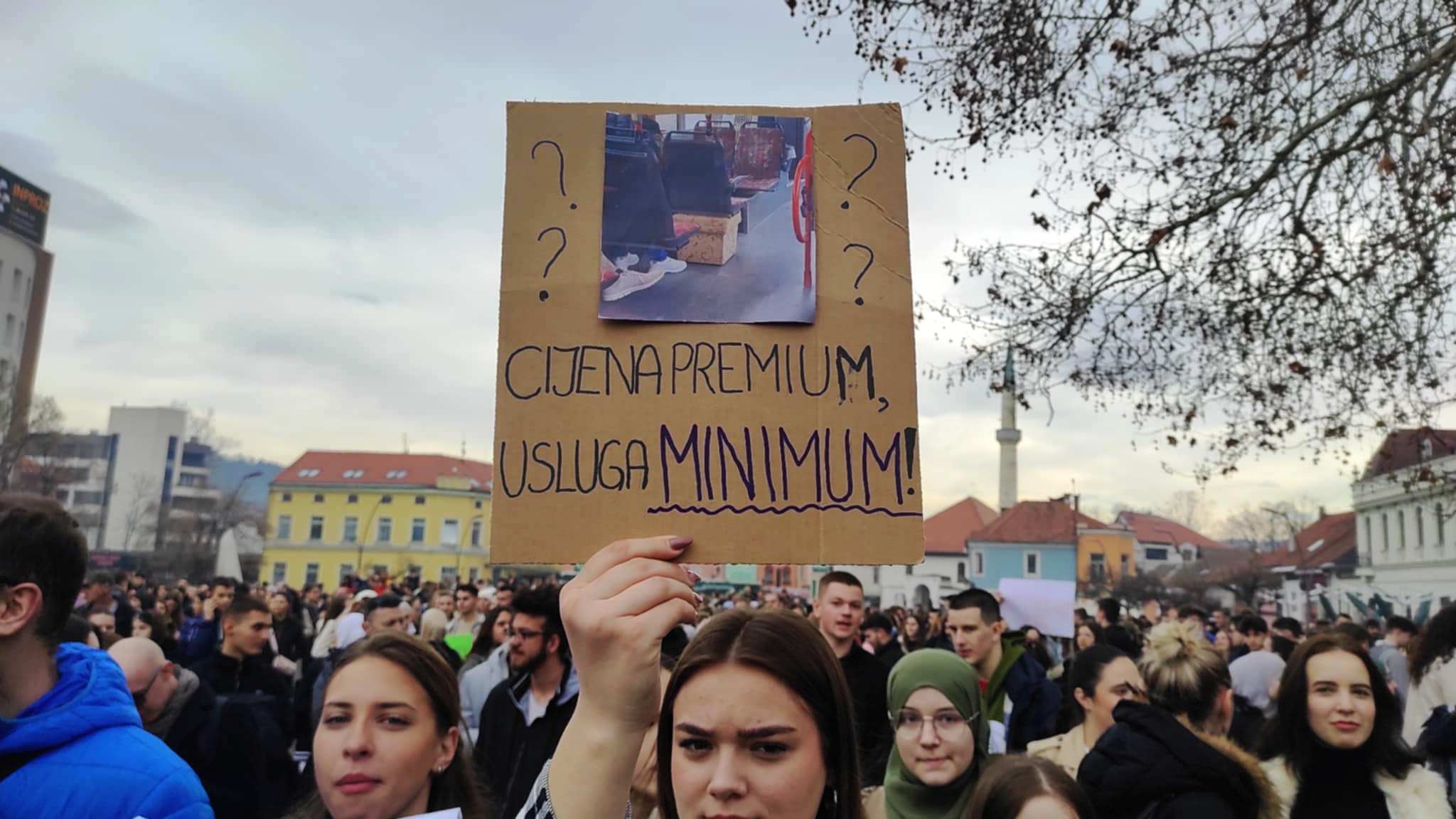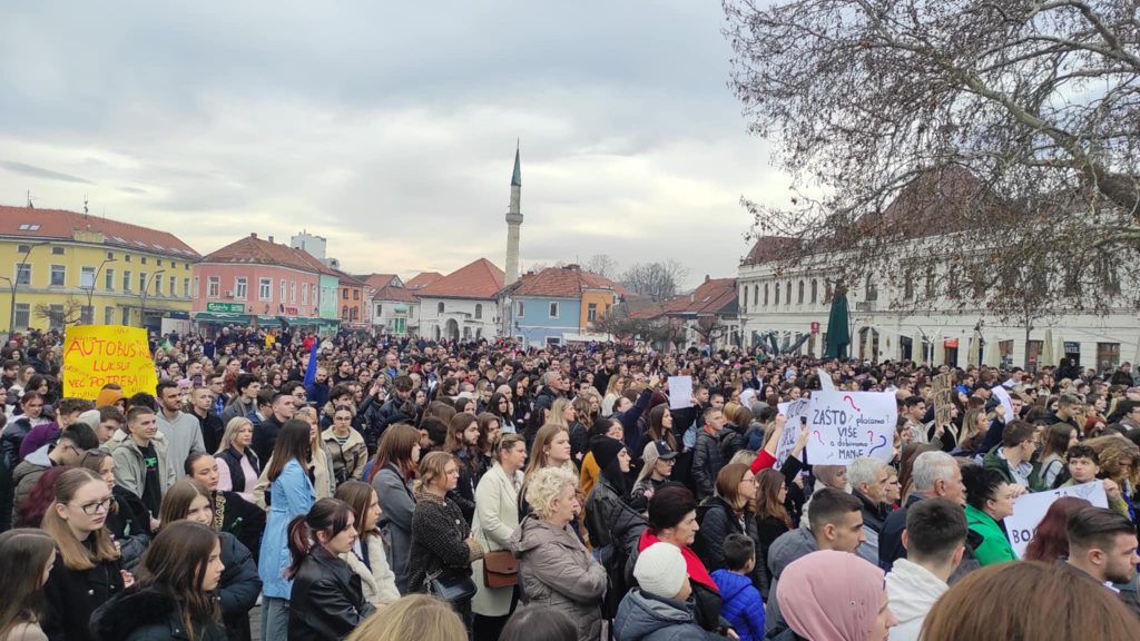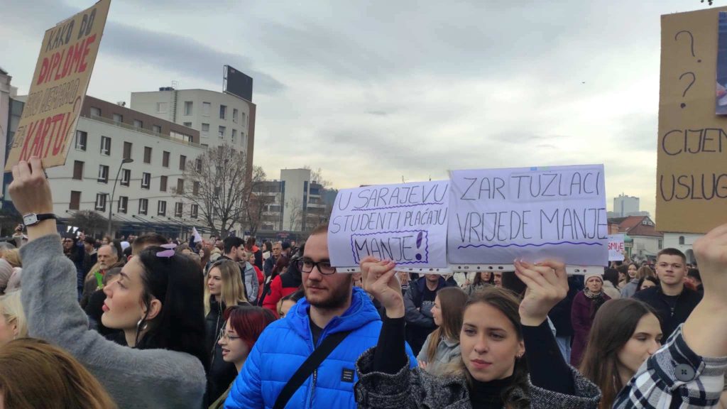 Više od 2.000 studenata, učenika i građana danas se okupilo na Trgu slobode u Tuzli kako bi iskazalo nezadovoljstvo zbog viših cijena karata javnog prevoza nakon odluke preduzeća “Gradski i prigradski saobraćaj” Tuzla.
