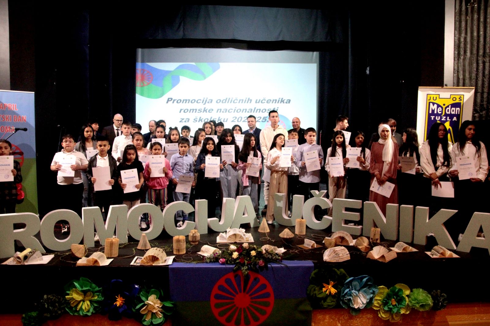Priznanja i jednokratnu stipendiju dobio je na današnjoj svečanosti 51 učenik osnovnih i srednjih škola romske nacionalnosti za rezultate postignute u protekloj školskoj godini. Promociju je na Svjetski dan Roma organizovalo Ministarstvo obrazovanja i nauke Tuzlanskog kantona i Udruženje građana „Evropski put Roma“ Tuzla a domaćin je bila OŠ „Mejdan“.