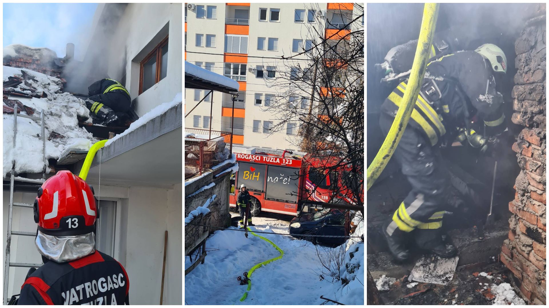 „Blagovremenom intervencijom vatrogasaca spriječeno je širenje požara. Povrijeđenih osoba nije bilo, a na objektu je pričinjena određena materijalna šteta. „, naveli su iz Profesionalne vatrogasne brigade Tuzla.
