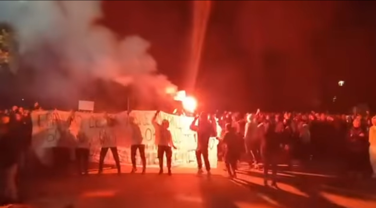 Okupljeni, uz bakljadu, nastavljaju da šalju skandalozne poruke ka turskim državljanima.