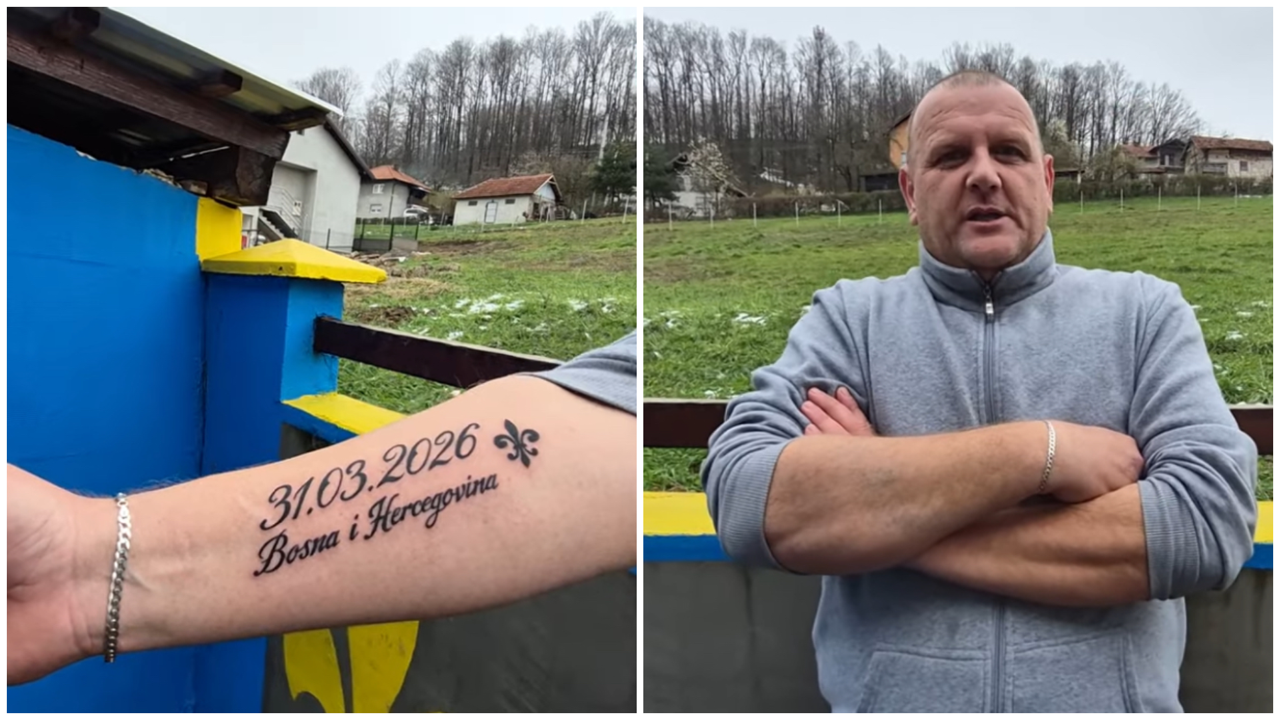 Zoran Pranjić iz Mramora kod Tuzle na poseban i vrlo ličan način odlučio je obilježiti historijski uspjeh fudbalske reprezentacije Bosne i Hercegovine, drugi plasman na Svjetsko prvenstvo. Ovaj strastveni navijač svoju ljubav prema domovini pretočio je u trajni podsjetnik, istetoviravši na ruci datum 31. 03. 2026. uz natpis „Bosna i Hercegovina“.